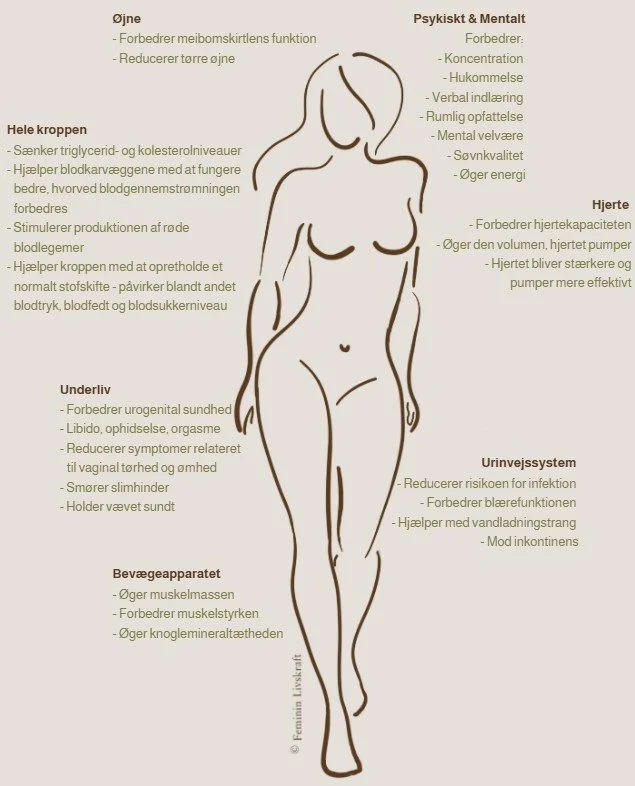 Mangel på testosteron kan forårsage træthed, koncentrationsbesvær, hukommelsesproblemer, hjernetåge, reduceret energi, hovedpine, depression, tabt muskelstyrke og nedsat lyst. Men det er kun sidstnævnte, nedsat/tabt lyst, det er ordineret til. Hvilket jeg synes er rigtig ærgerligt, for, for mig, var det testosteron, der fik mig til at føle mig som mig selv igen, og efter bare et par dage på testosteron kunne jeg sove en hel nat for første gang i lang tid! Jeg tror faktisk, det hjalp på ALLE de typiske mangelsymptomer, ikke kun lyst, og for mig, er det meget værdifuldt. Hvis man ser på forskningen, er det kun omkring 25% af kvinder, der får deres lyst tilbage fra testosteron. Du bør ikke lade dig afskrække af det, men prøv det, måske får du din energi, styrke, hukommelse, initiativ, selvtillid og nattesøvn tilbage, ligesom mig. Et andet plus var, at den hovedpine, jeg havde, var væk, pist væk. Jeg synes helt sikkert, at du altid bør overveje testosteron, ikke kun hvis du har mistet din lyst. Testosteron giver os en masse styrke, drivkraft og ambition. Det, der får os i gang og giver os appetit på livet. Det hjælper med at producere muskelmasse, forebygger vægtøgning og er godt for blod- og knoglesundhed. Det kan også genskabe den "spontane" sexlyst (ikke relateret til forhold).